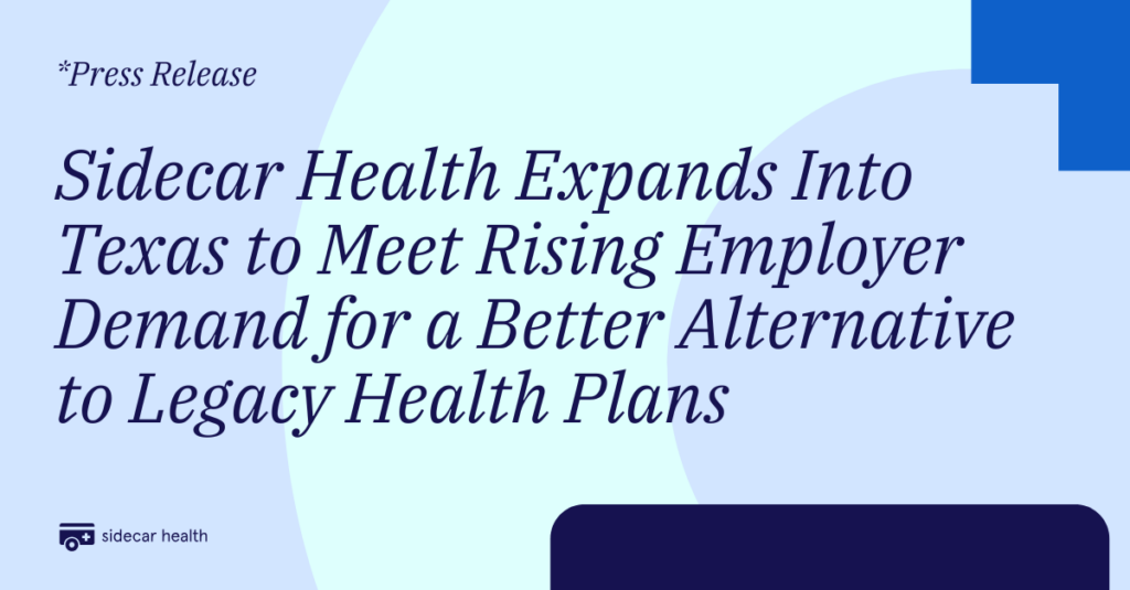 Sidecar Health Expands Into Texas to Meet Rising Employer Demand for a Better Alternative to Legacy Health Plans
